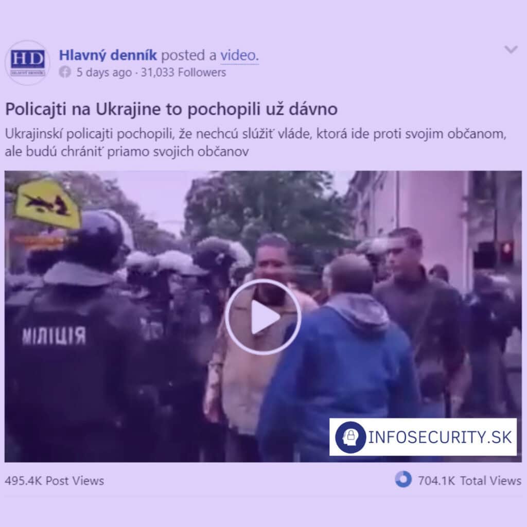 Portál s problematickým obsahom Hlavný denník na svojom profile na Facebooku uverejnilo video, na ktorom ukrajinskí policajti skladajú na zem svoje obranné štíty. V popise príspevku bolo uvedené, že policajti tým odmietli slúžiť svojej vláde, ktorá ide proti občanom.