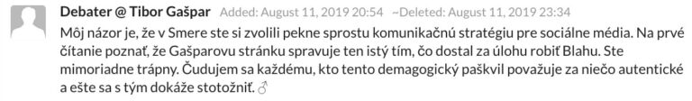 Ak sa Gašpar naozaj vybral touto cestou politickej komunikácie, mali by sme v jeho budúcich statusoch registrovať podobný trend.