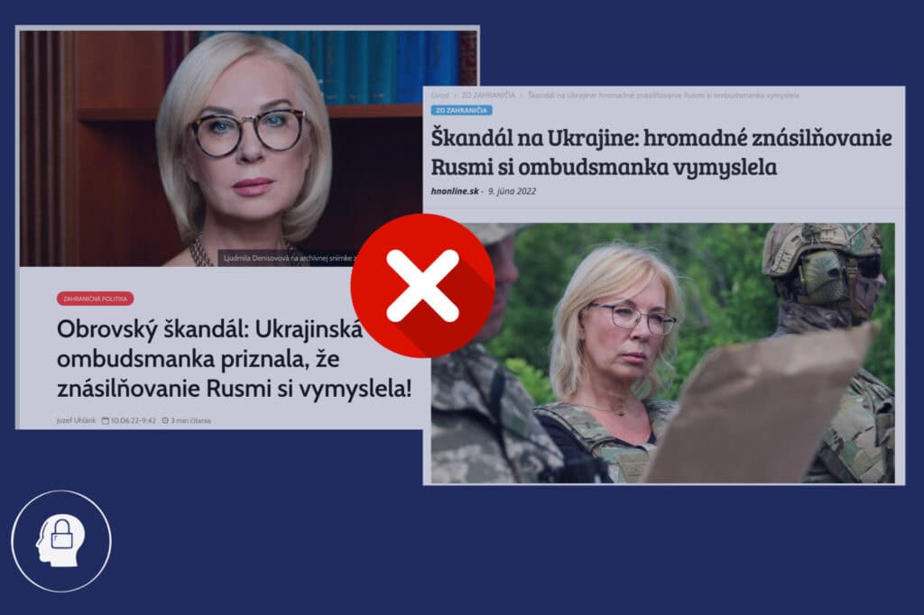 Viaceré portály informovali, že ombudsmanka bola odvolaná preto, že si vymyslela správy o sexuálnom násilí zo strany ruských vojsk. Stránky s problematickým obsahom však z kontextu vynechali informáciu, že preháňanie o znásilneniach bolo len jedným z veľkého množstva dôvodov na odvolanie. Zároveň žiadny z portálov neuviedol na pravú mieru, že existuje značné množstvo dôkazov, ktoré potvrdzujú, že ruskí okupanti sexuálne násilie na Ukrajincoch skutočne páchajú. Viac v článku.