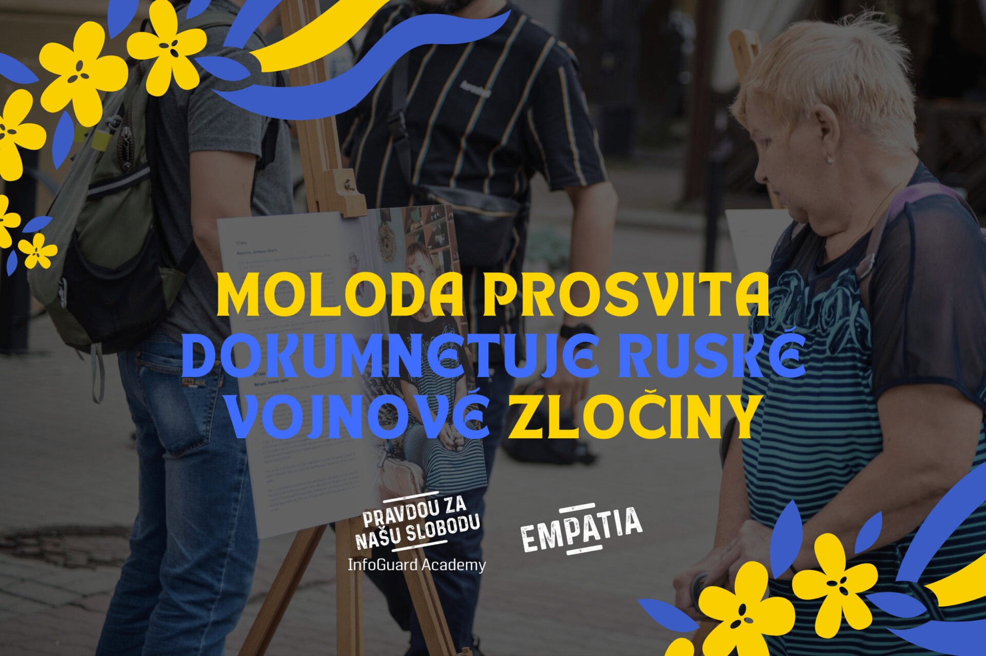 Moloda Prosvita Prykarpattia je dlhoročná občianska organizácia v Ivano-Frankivsku, meste na západnej Ukrajine. Od roku 2014 dokumentuje ruské vojnové zločiny páchané voči občanom a vojakom v nelegálnych detenčných centrách na východe Ukrajiny. „Neskôr naši kolegovia, ktorí sa zaoberali právnymi záležitosťami, tieto materiály podávali ďalej medzinárodným inštitúciám, najmä medzinárodnému súdu,“ vysvetľuje Yevheniia.