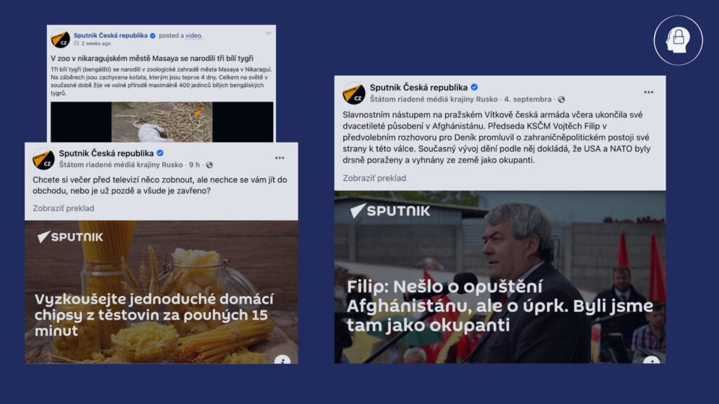 Facebookové príspevky stránky Sputnik Česká republika.