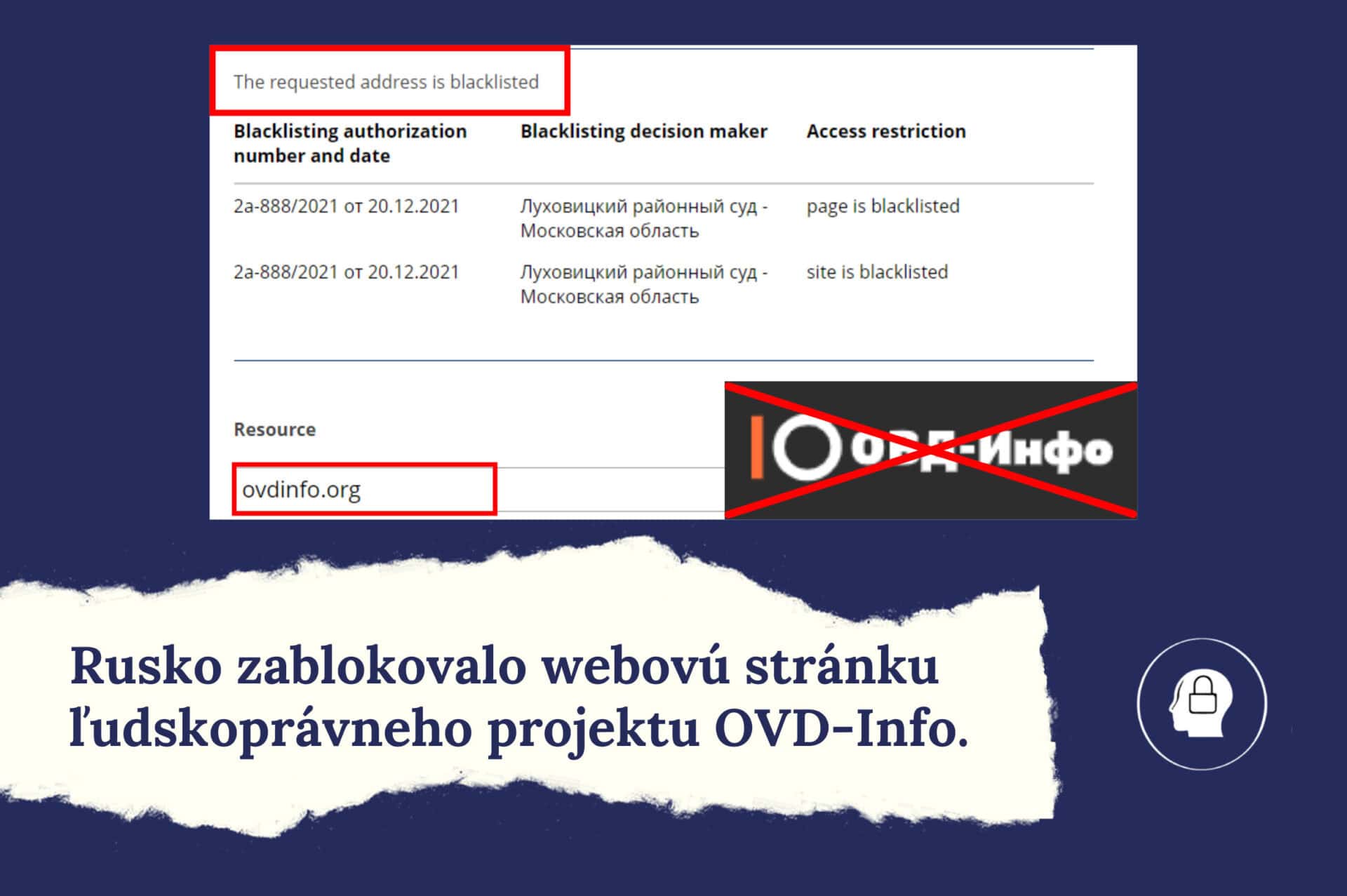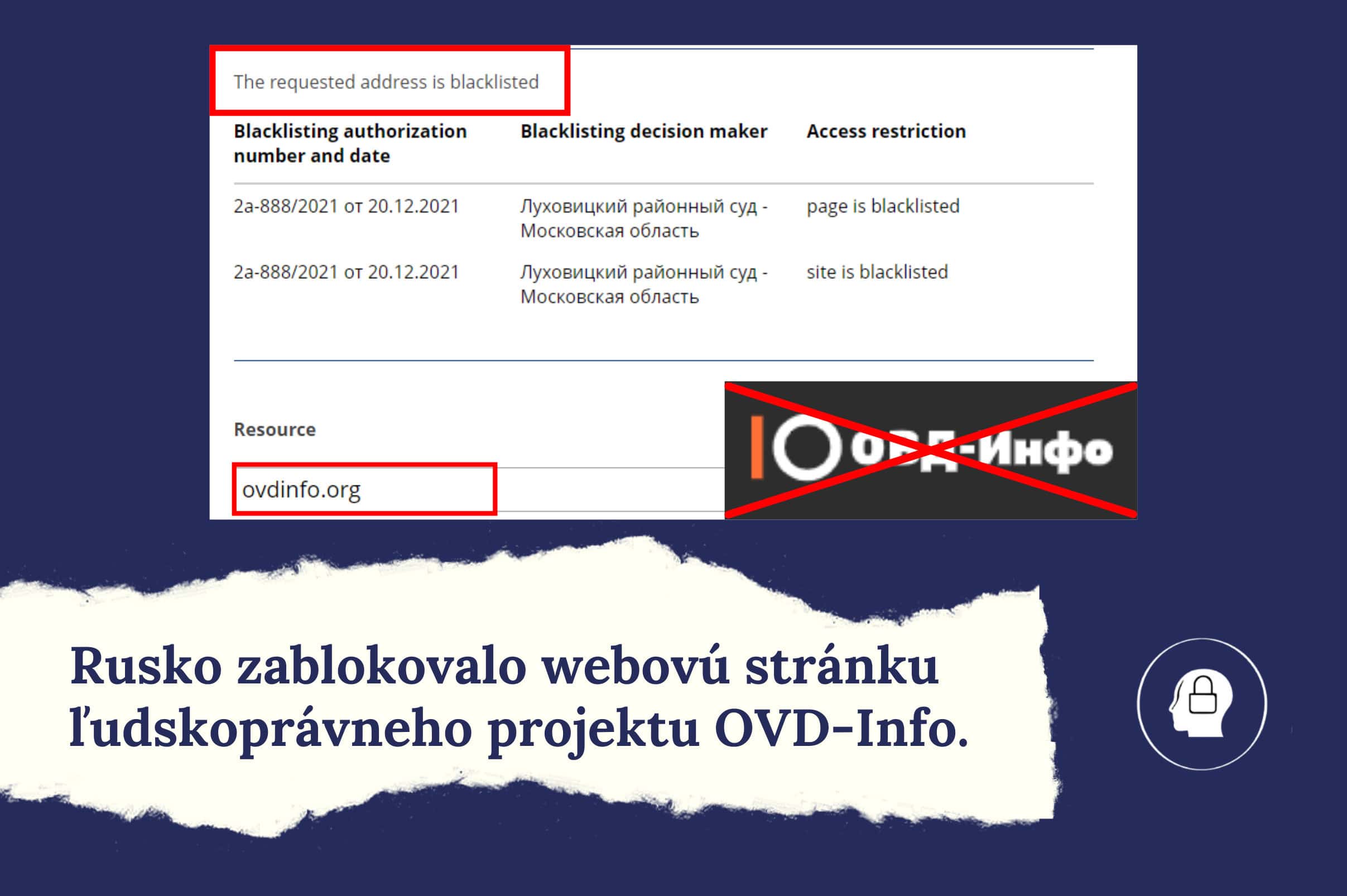Pred niekoľkými dňami Federálna služba pre dozor v oblasti telekomunikácií, informačných technológií a masmédií (Roskomnadzor) zablokovala webovú stránku ruskej skupiny na monitorovanie práv, OVD-Info.